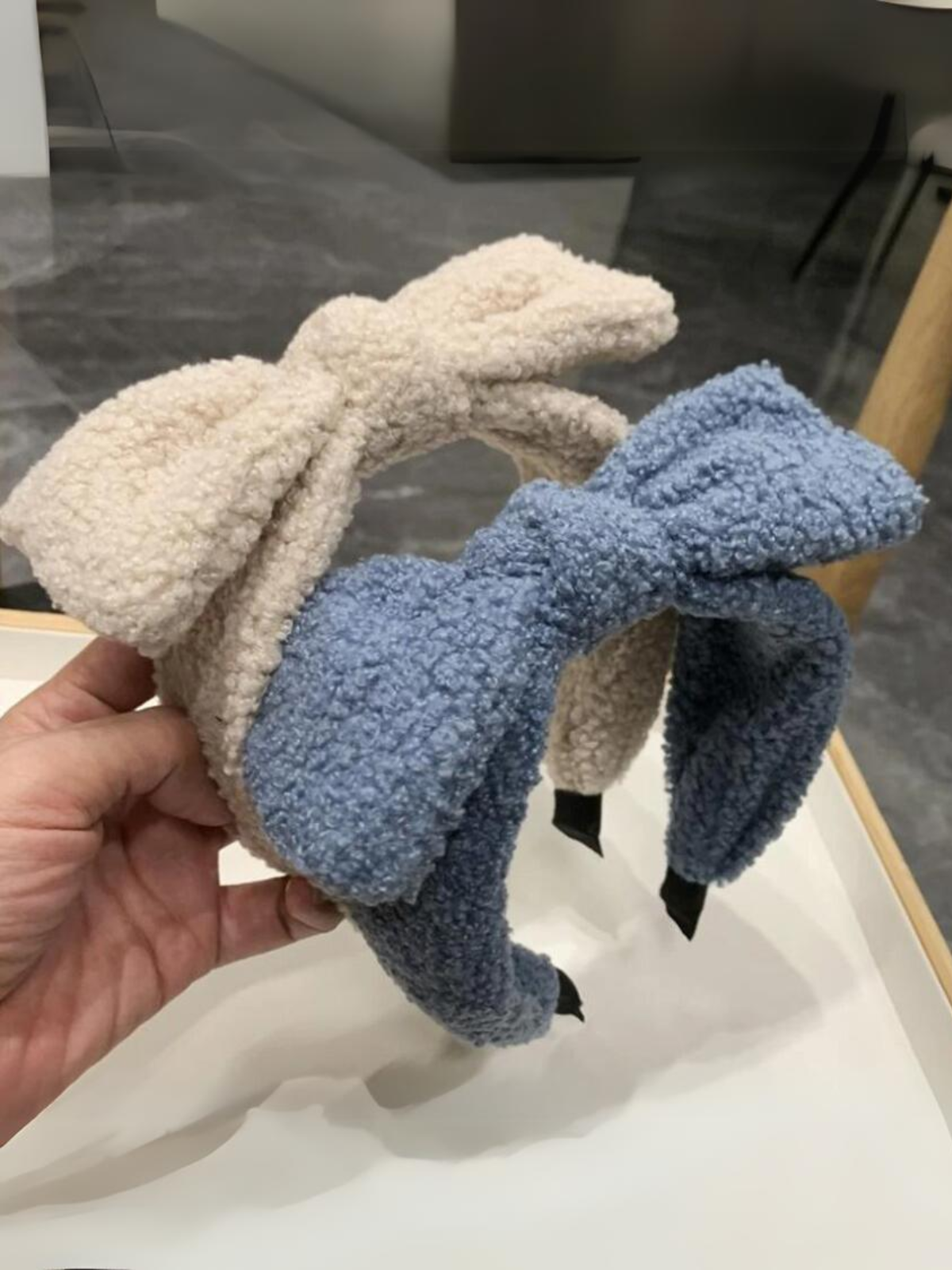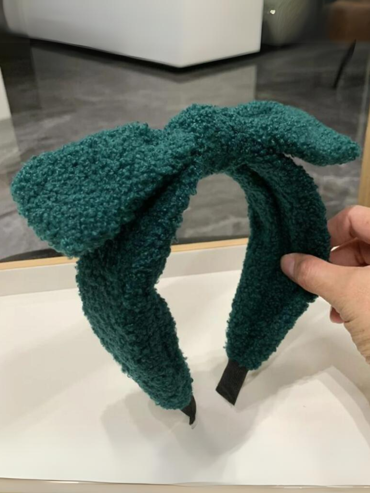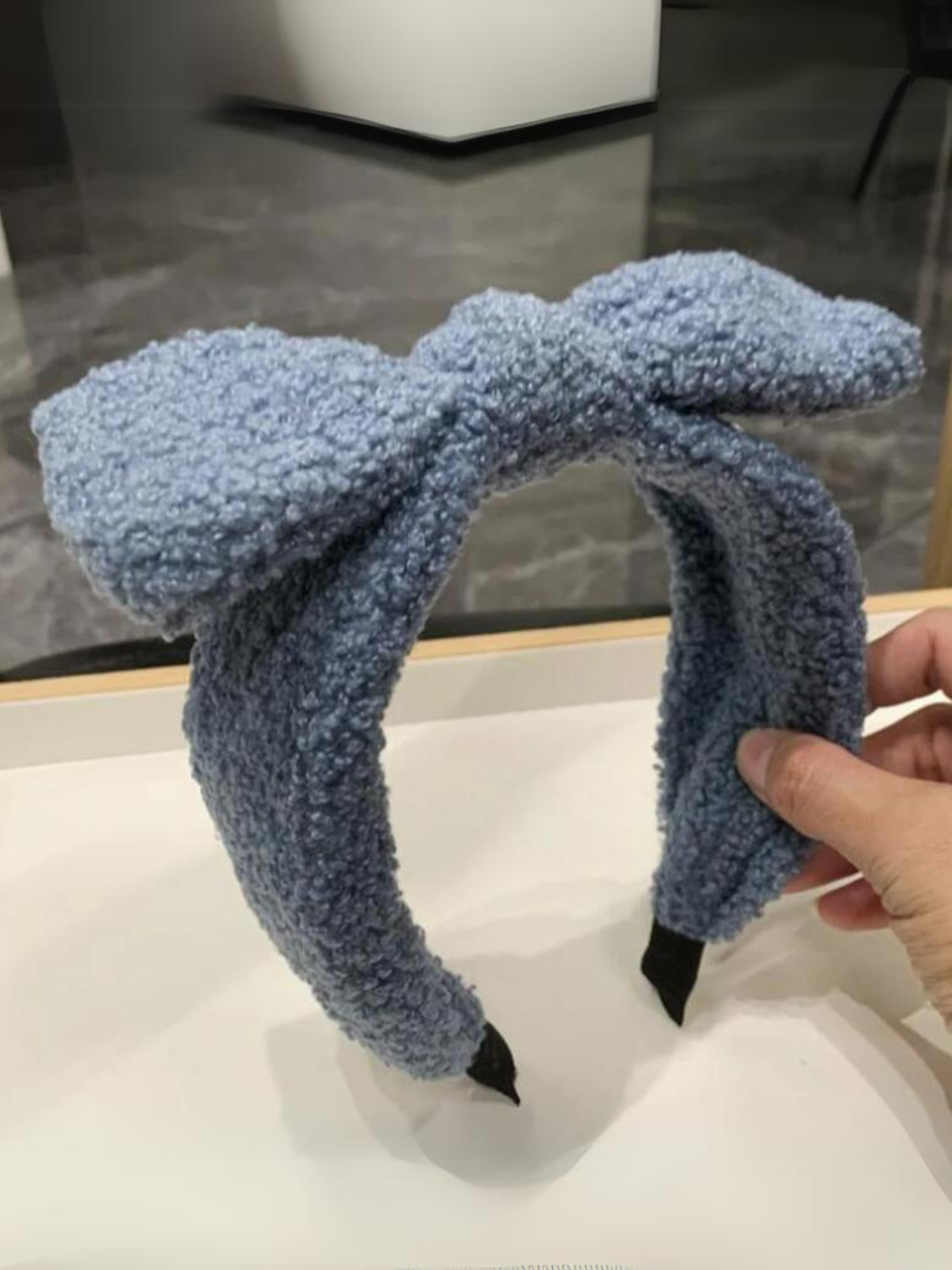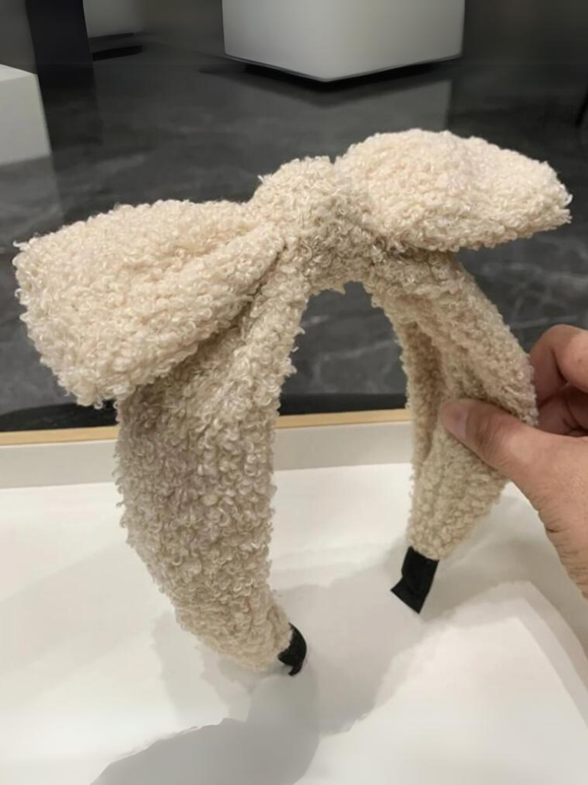 Thick plush headband with statement bow accent