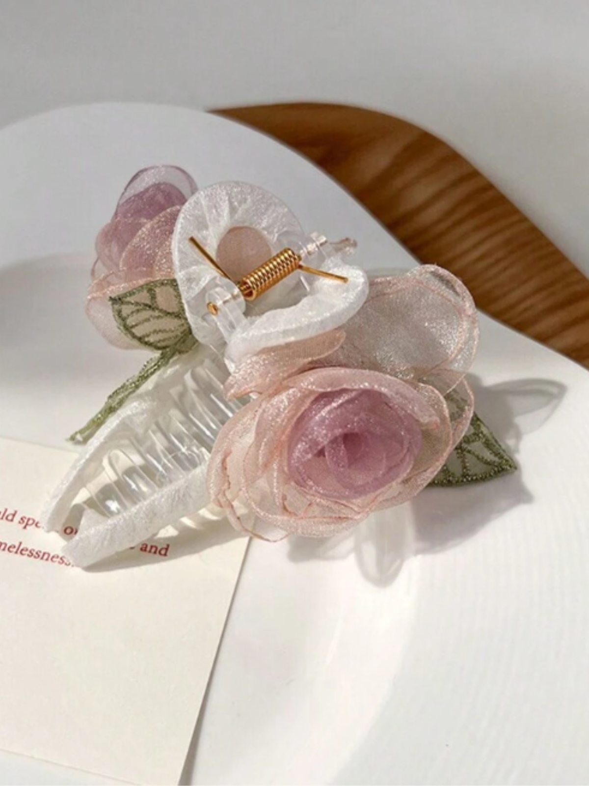• Petals in her hair so she's ready for springtime adventures. This pink rose hair clip is so dreamy, with lovely fabric blossoms that look enchanting. Clip on and let her bloom!