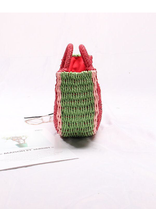 Say goodbye to boring beach days because this watermelon straw woven tote will brighten up your little one's outfit. With a bright red and green color mix, round handles, and a trendy silhouette, this fun accessory is sure to turn heads and make people smile!
