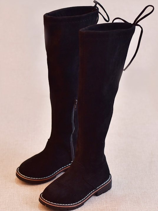 The ultimate fall boots for fashionistas! These faux suede over-the-knee boots are EVERYTHING. That chic silhouette is made even better with a lace-up back design. Even Mommy would love a pair but this one is for little style stars only!