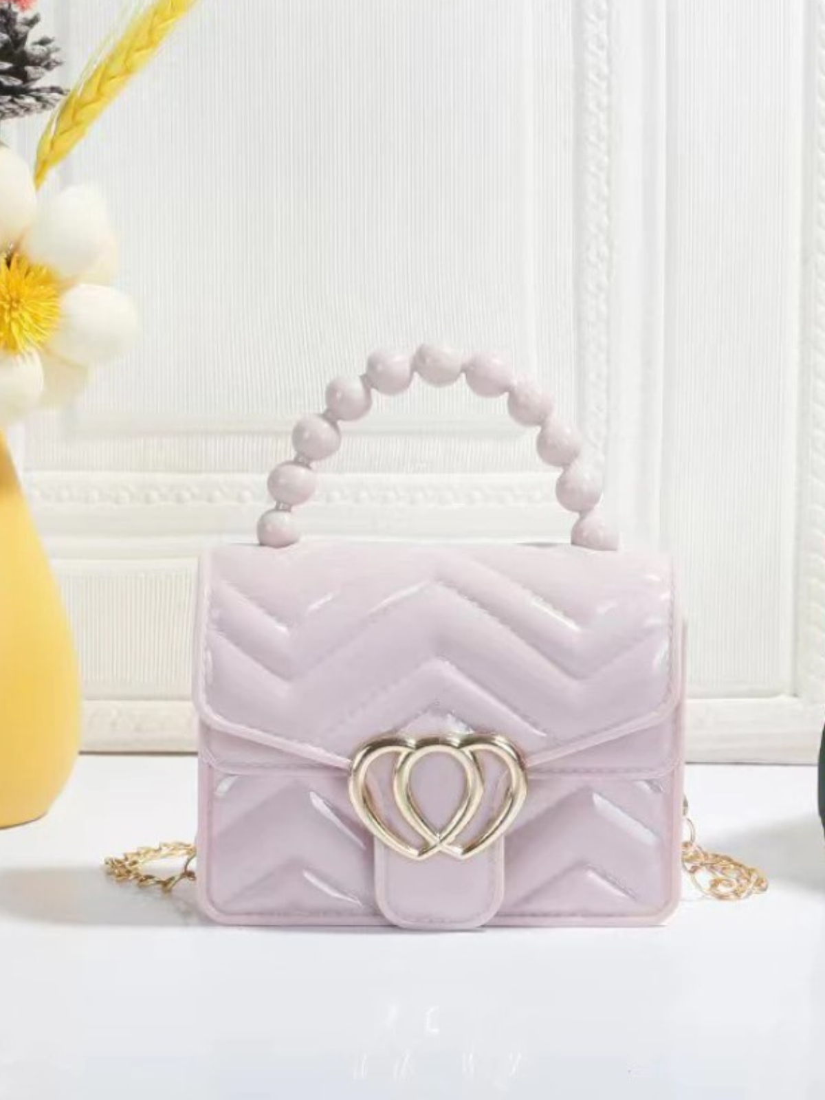Made especially for little trendsetters! This heart flap mini bag will update your fave girl's style game with its elegant design, cute candy color, and interlocking heart accent. The designer-inspired silhouette will make her look and feel like the most sophisticated little lady!
