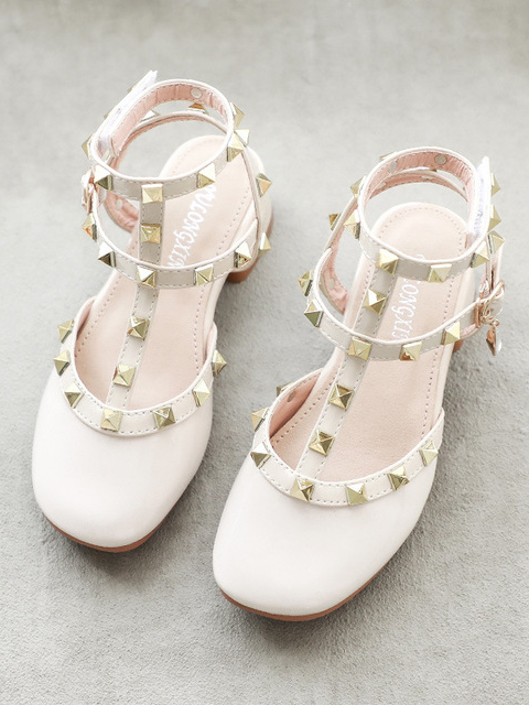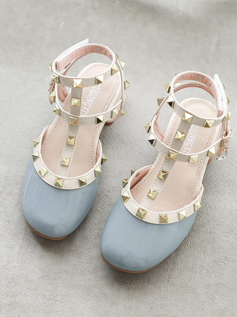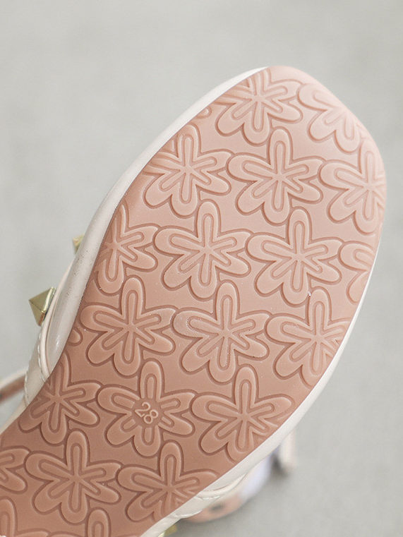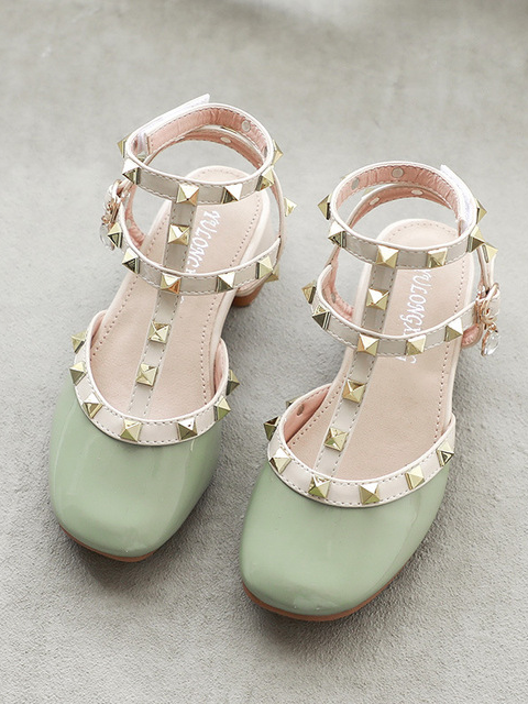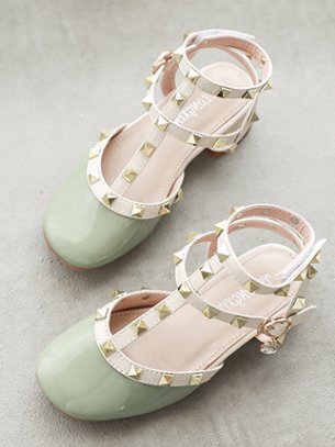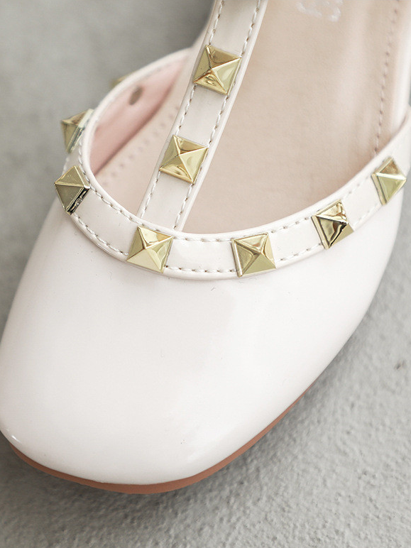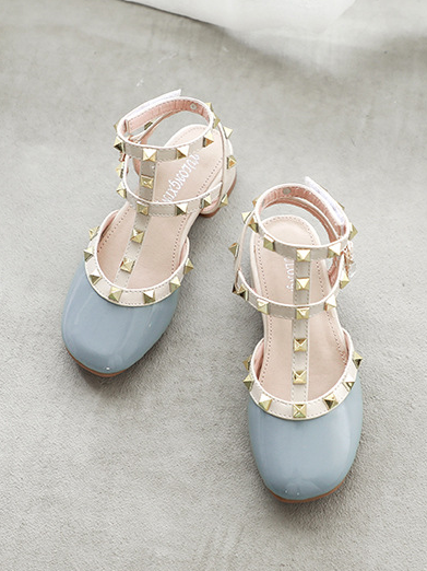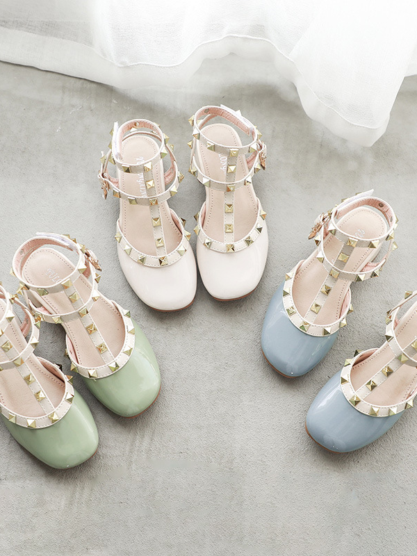 • Studded ankle strap flats are a MUST for chic girl's fashion. With their patent toe and mini-heel, your diva will feel chic with every step. She'll be so ready for the runway!