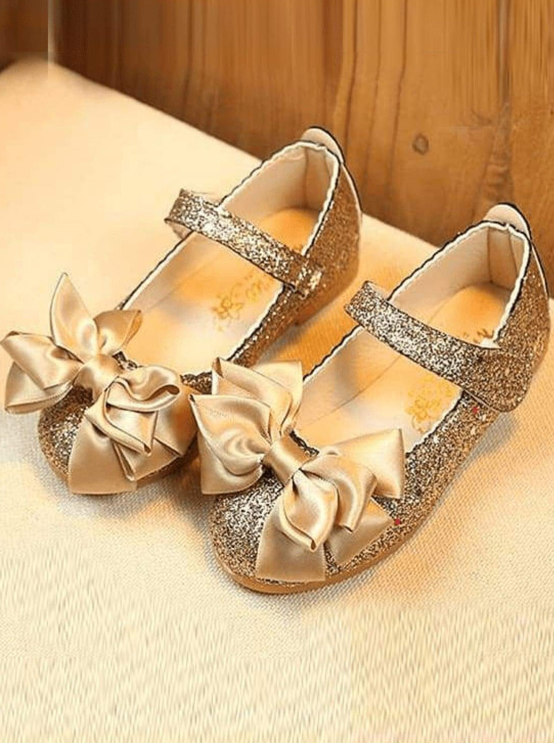 • Magic and sparkles combine in these sophisticated glitter bow shoes. All-over shimmer, a cute silhouette, and the prettiest satin bow sit atop to make each step extra enchanting.