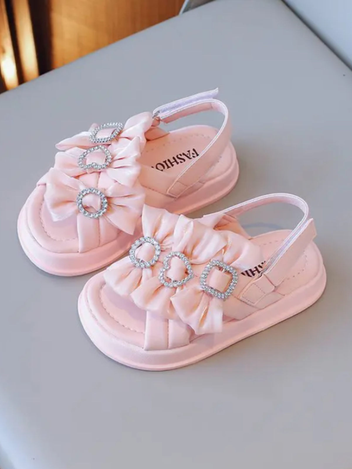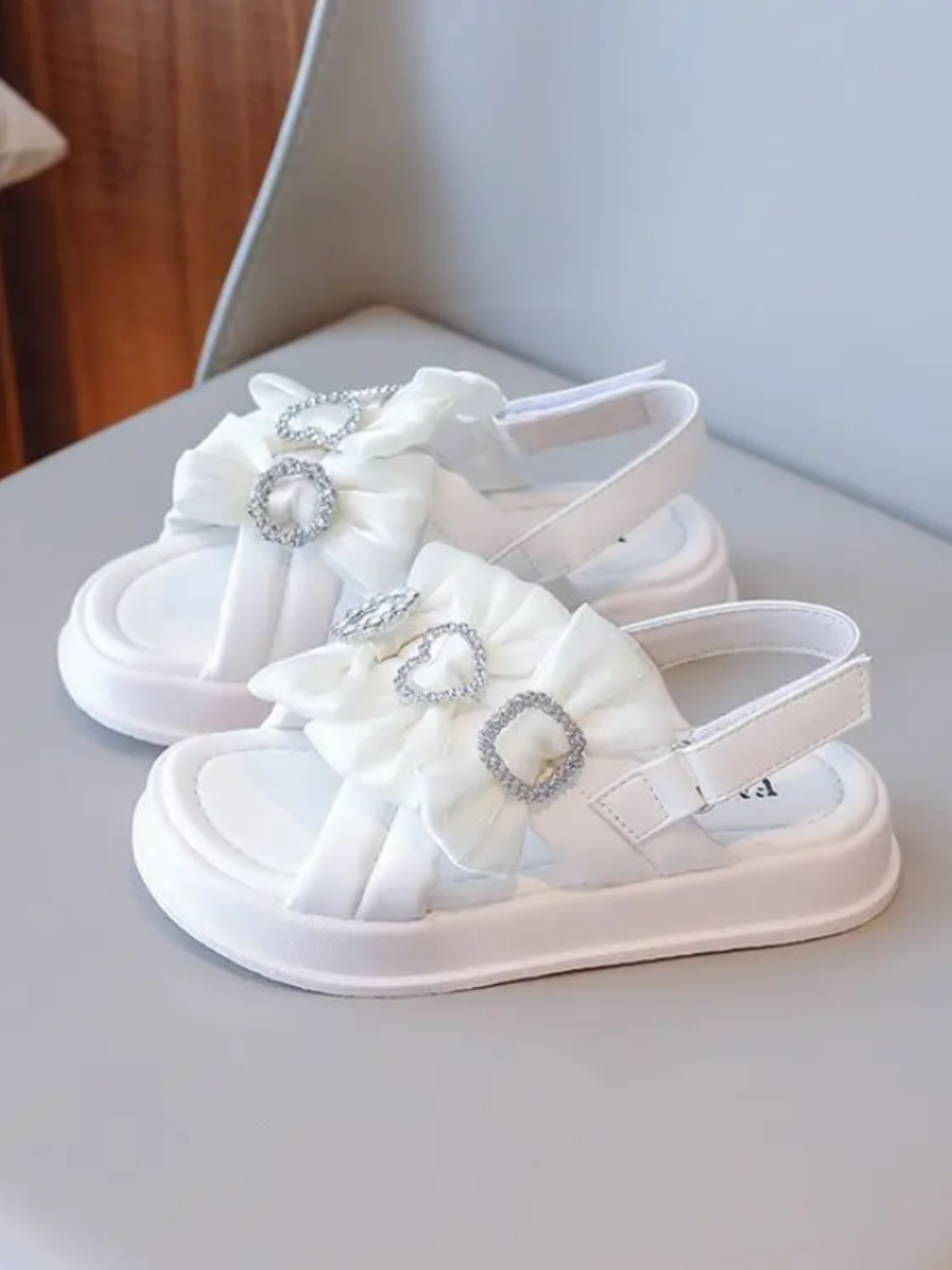 • Chunky sole open-toed sandals with rhinestone buckle bow accents and velcro ankle strap