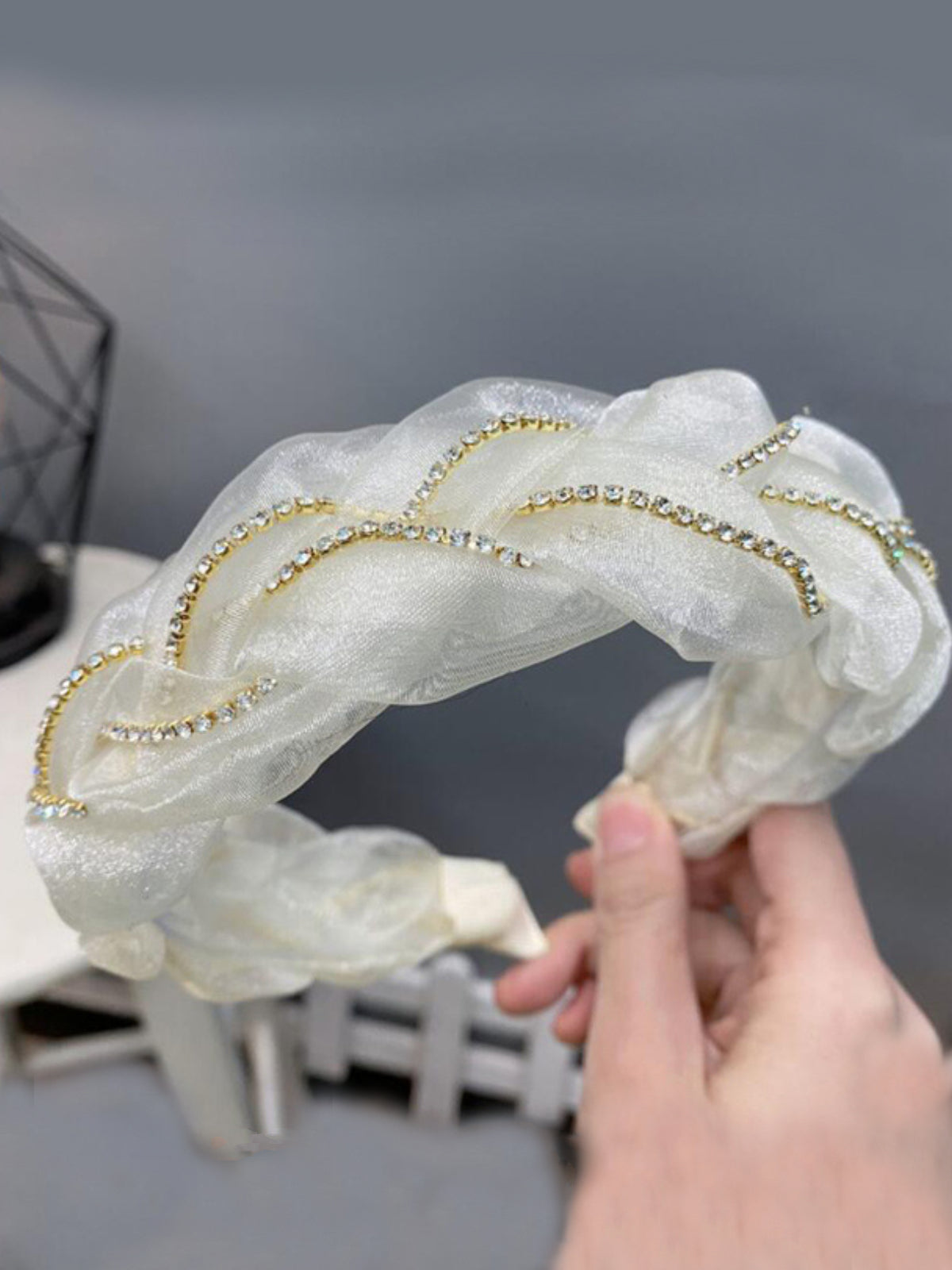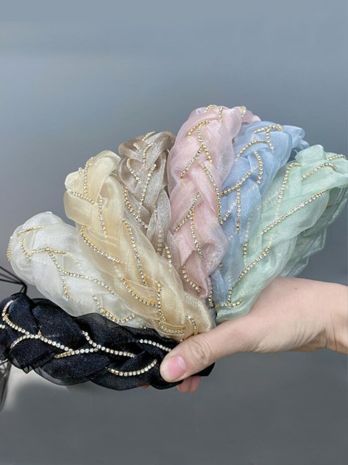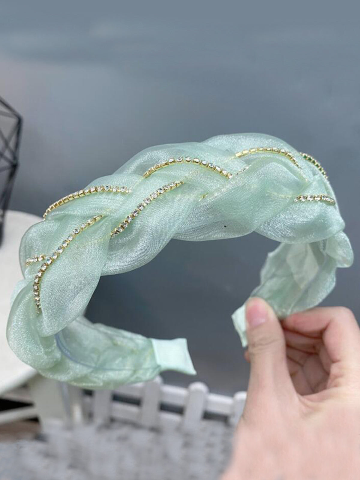 Sophisticated little beauties will LOVE this braided headband. Styled with the most beautiful braided fabric and finished with sparkling rhinestones, this pretty piece is just the perfect topping to her most fabulous dresses.