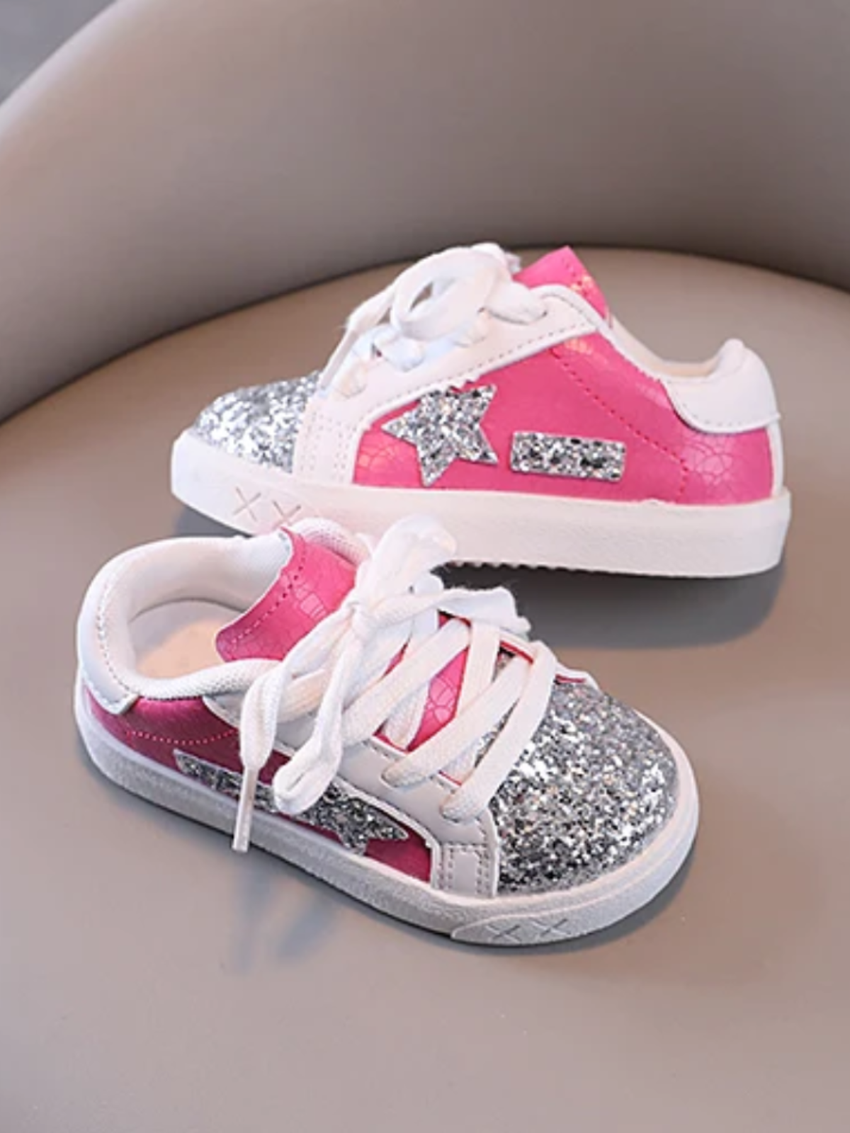 These Glitter Star Sneakers are designed for the little explorer who loves to move in style.