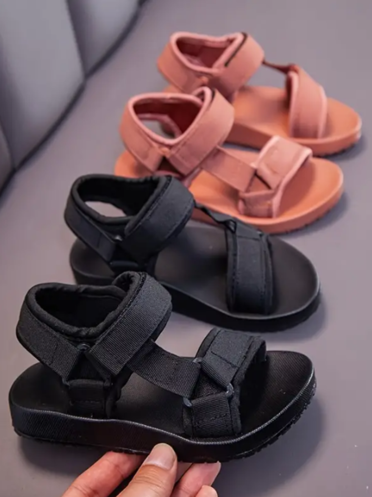 • Thoughtfully designed for active girls, these sandals combine functionality with a fashionable touch, available in black, rose, and taupe.