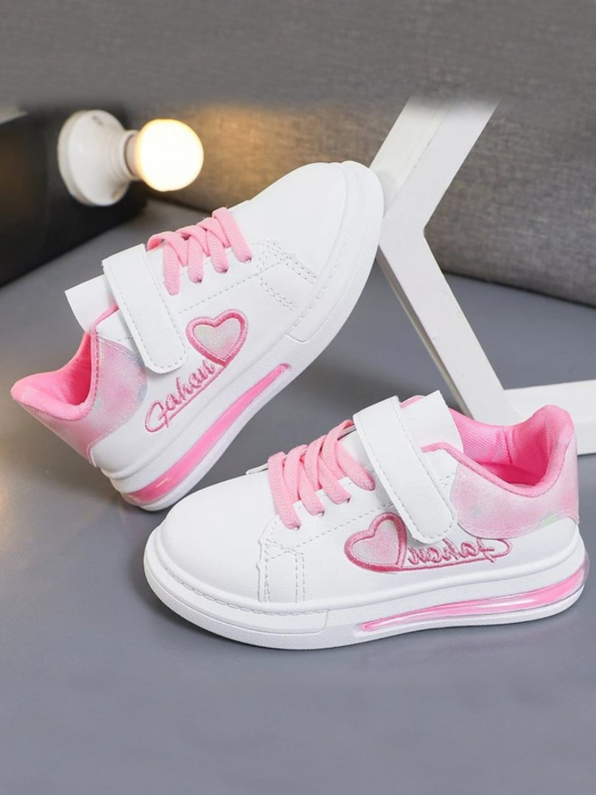 • We're OBSESSED with these lovely velcro strap sneakers and we're sure your little girl will be too! Its trendy silhouette is adorned with embroidered heart details in the cutest pink color. It's a dream pair for mini sneakerheads!