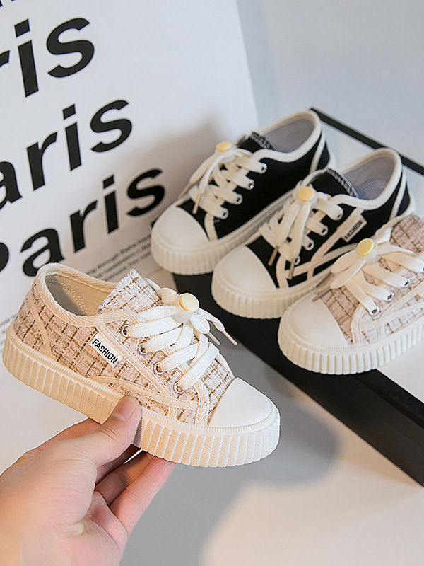 • Walking around like a prep school princess in these stylish lace-up sneakers! Choose from classic black or a sophisticated tweed finish to elevate your look. Designed for little fashionistas like you and me!