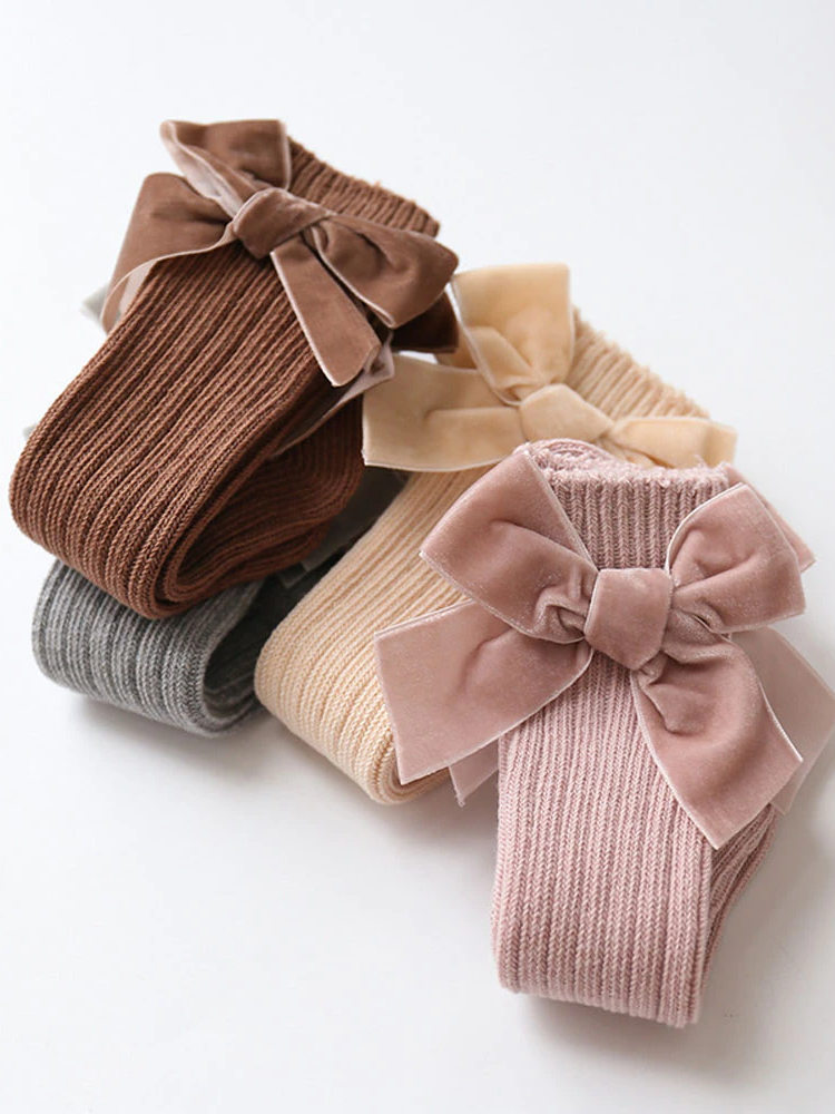Just the coziest velvet bow socks I ever did see! They are lush, stylish, and absolutely lovable. Available in soft, muted colors that will complement your fall and winter wardrobe. Grab a pair (or more) and get ready to look your best! *wink